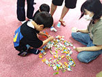 3年ぶりに、規模を縮小して子どもまつりを行いました。「神様や友だちとつながろう」のメッセージを聞いたあと、みんなでゲームや輪投げ、射的、みことば釣りなどをして楽しみました。お兄ちゃんお姉ちゃんから、小さなお友だちまで、元気いっぱいに盛り上がりました。